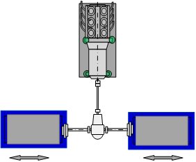 前置前驅變速箱,以1臺電機驅動,以2臺電機加載 ![]() 帶變速箱的前驅發動機總成,以2臺電機加載 ![]() 縱置后驅變速箱,以1臺電機驅動,以2臺電機加載